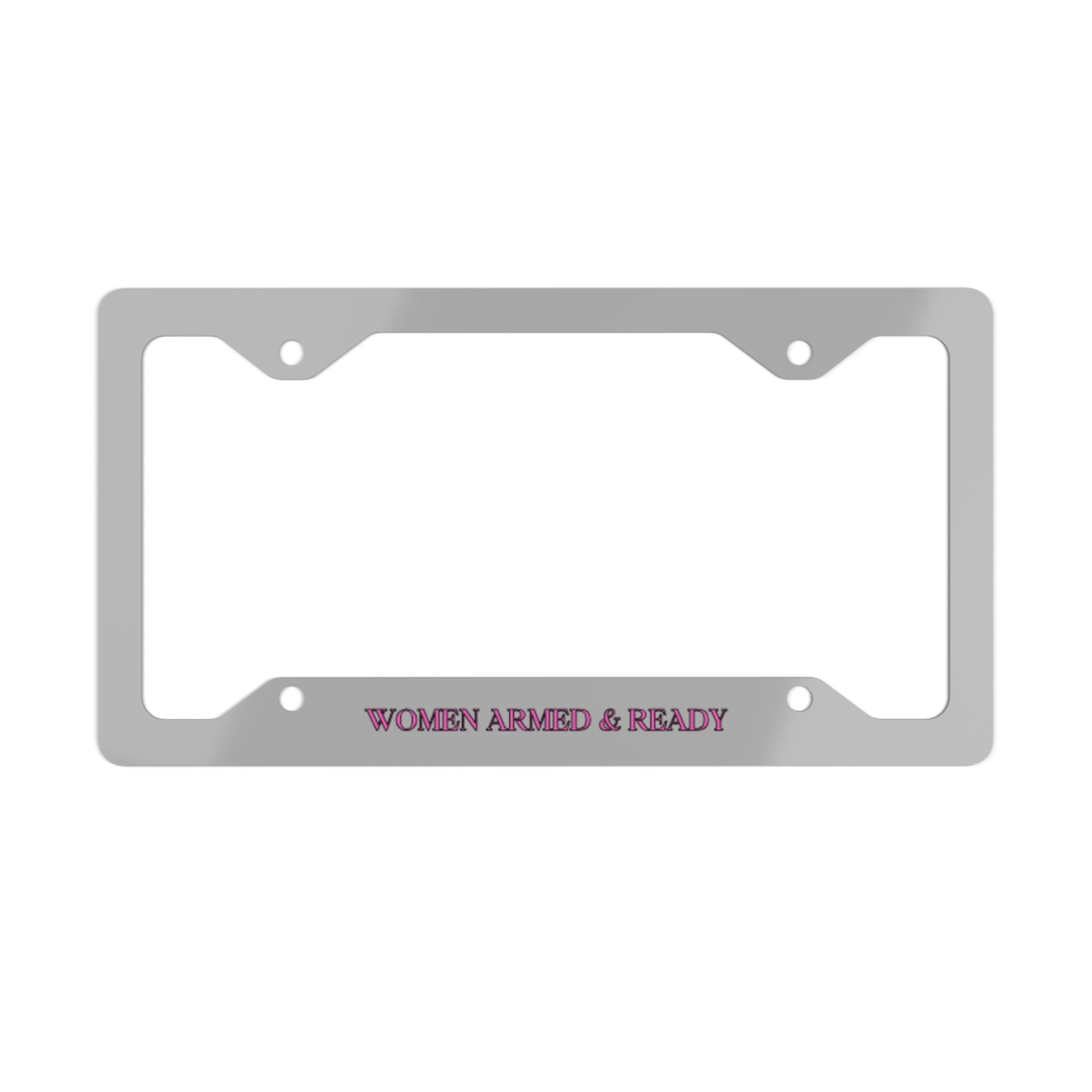Women Armed & Ready Grey Metal License Plate Frame